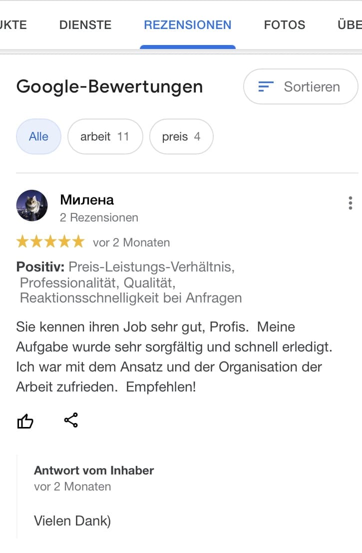 Unsere Preise gelten für Werktage. Für Arbeiten an Wochenenden, Feiertagen oder in der Nacht müssen Aufschläge auf den Gesamtbetrag zusätzlich in Rechnung gestellt werden.